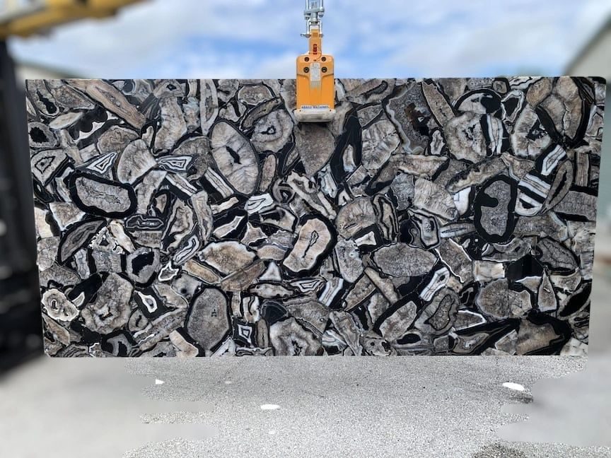 Our website showcases a part of our massive collection that is available in store. Stop by at our warehouse to touch, feel and experience the beauty of these stunning slabs, precious stone and more in person by visiting our stores